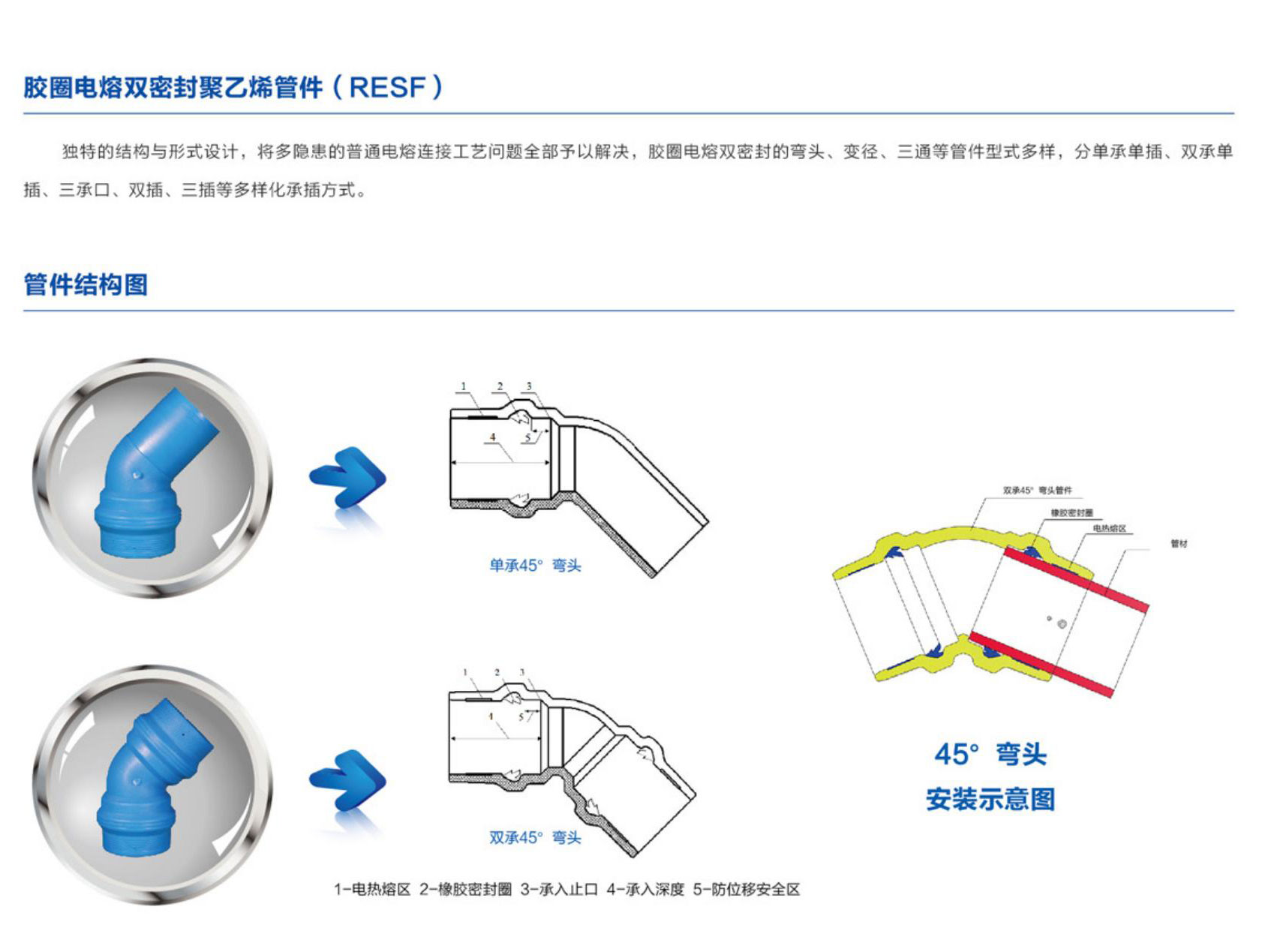 膠圈電熔雙密封45度彎頭