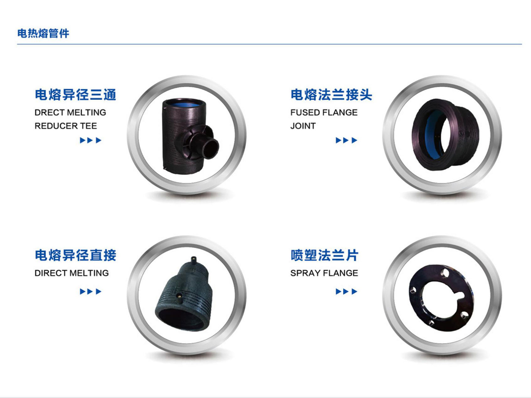 電熔直接 | 電熔90°彎頭 | 電熔法蘭接頭 |