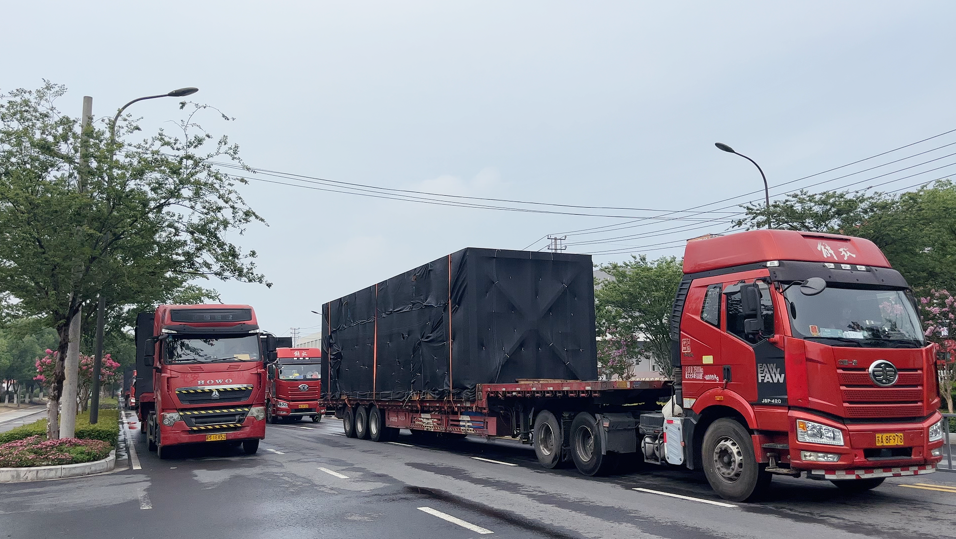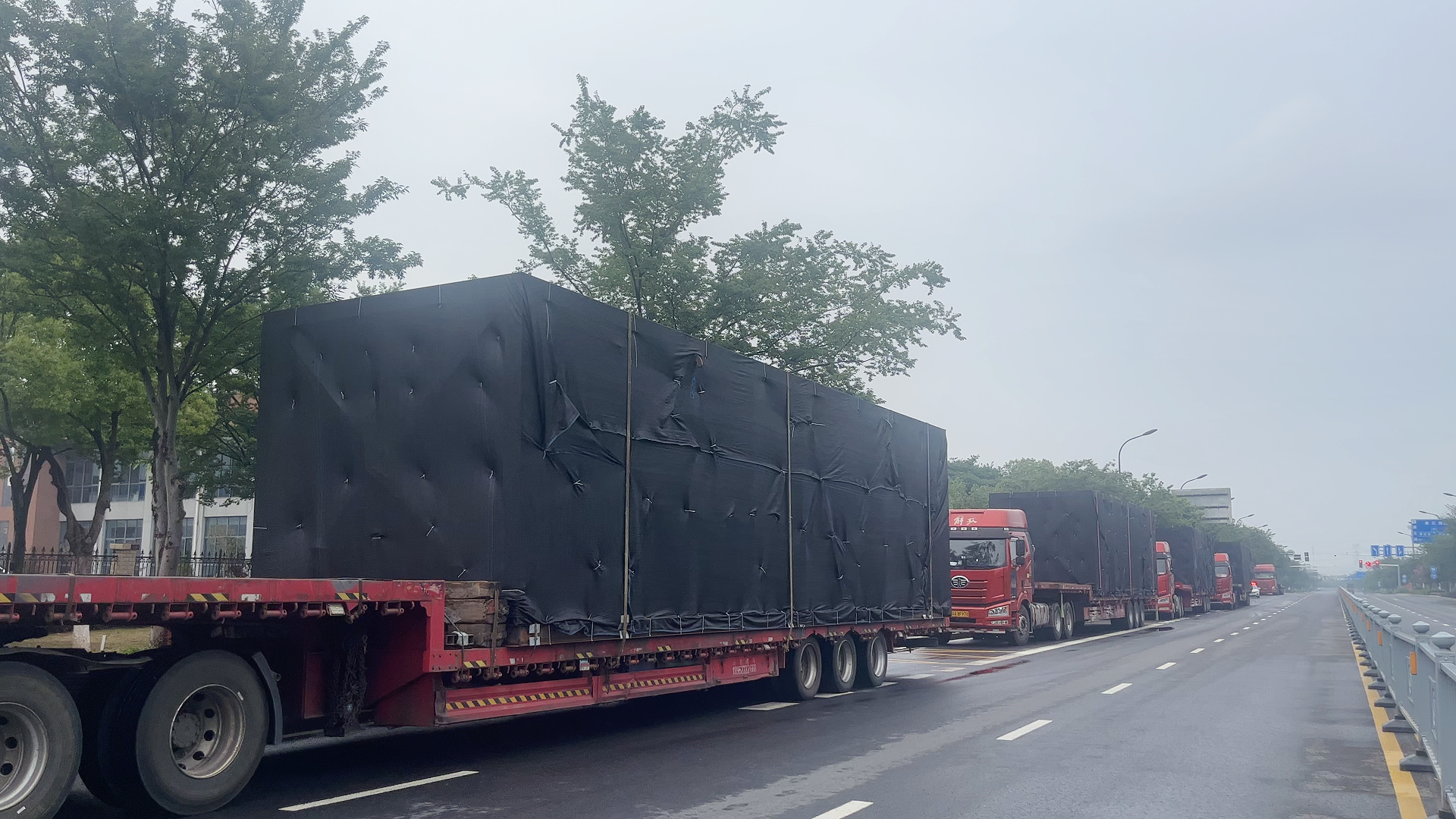 2025 年 6 月 27 日,江蘇南京遭遇強降雨襲擊。六合經濟開發區時代大道 138 號,江蘇狼博管道制造有限公司廠區內卻是一派熱火朝天的景象。十余輛重型卡車整齊排開,工人們身披雨衣,在雨幕中熟練地進行最后的裝車固定作業。盡管雨水模糊了視線、浸透了衣衫,但大家眼神堅定,動作迅速而沉穩,只為確保這批物資能按時啟程。
